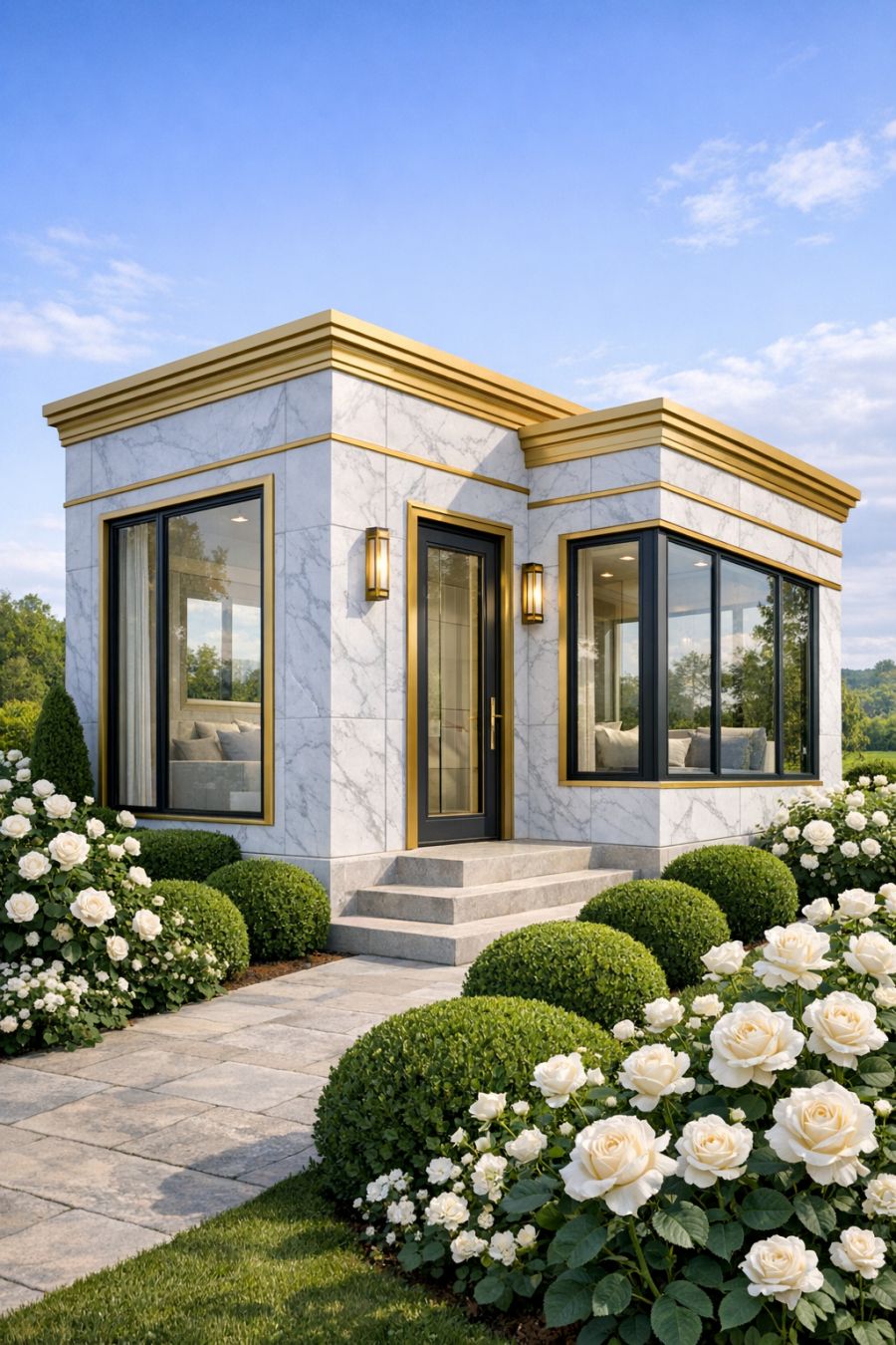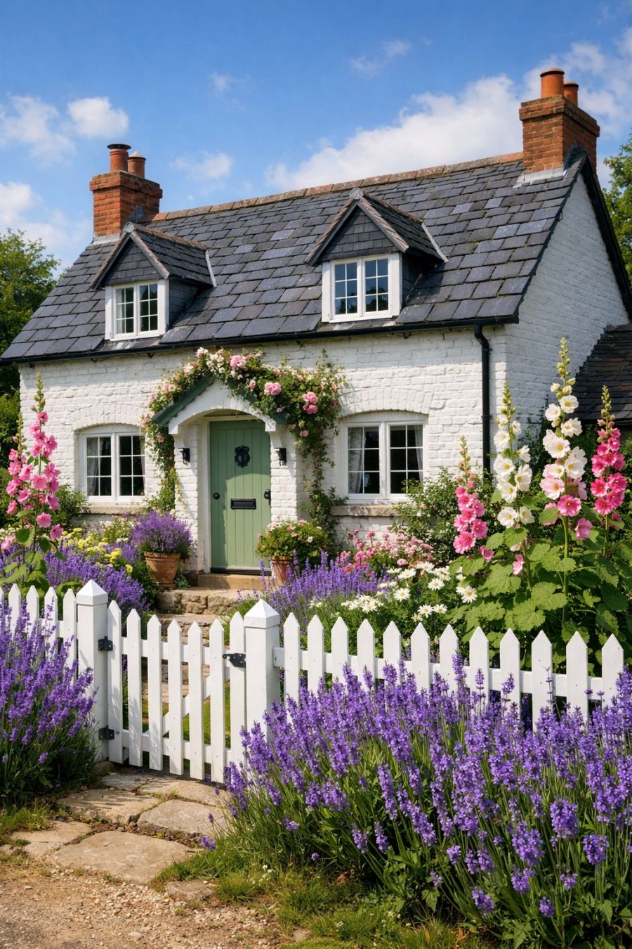 Step into a world of storybook charm with this whimsical whitewashed brick garden cottage. Envisioned as a concept art piece, this delightful home des