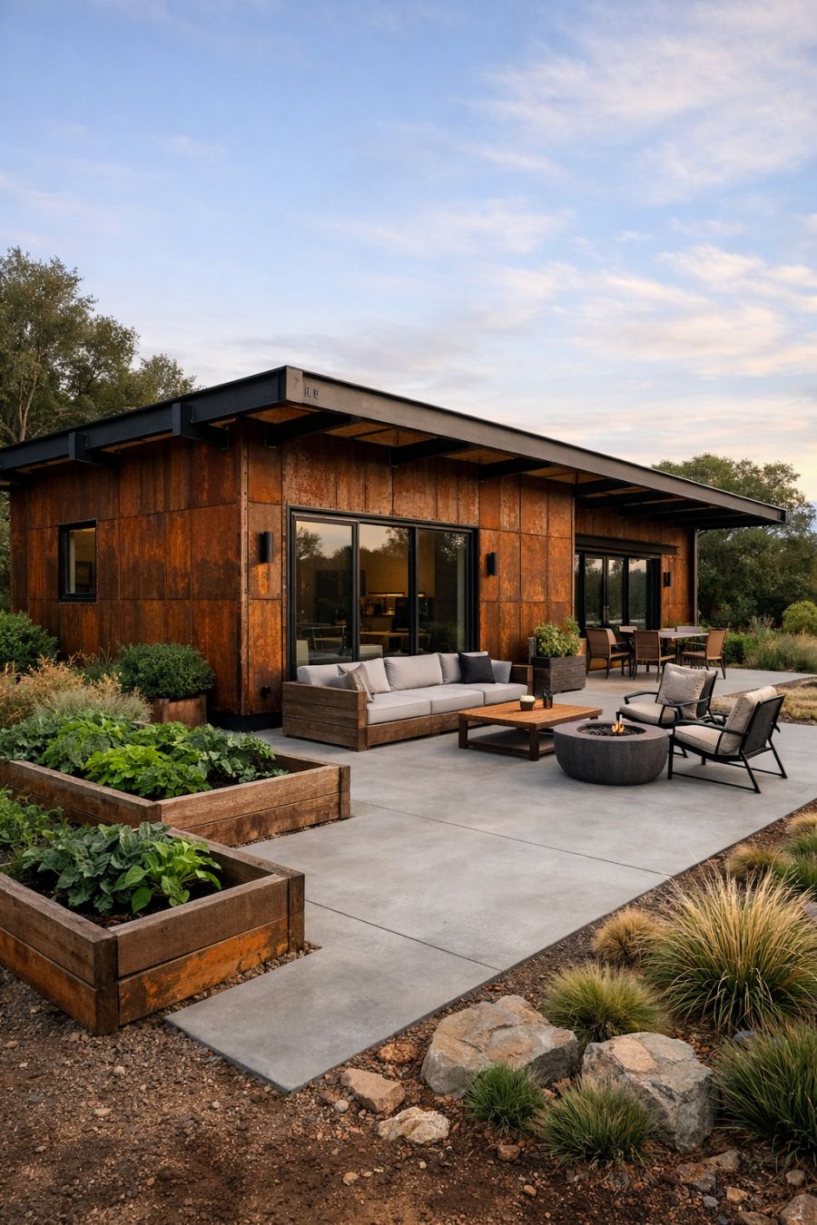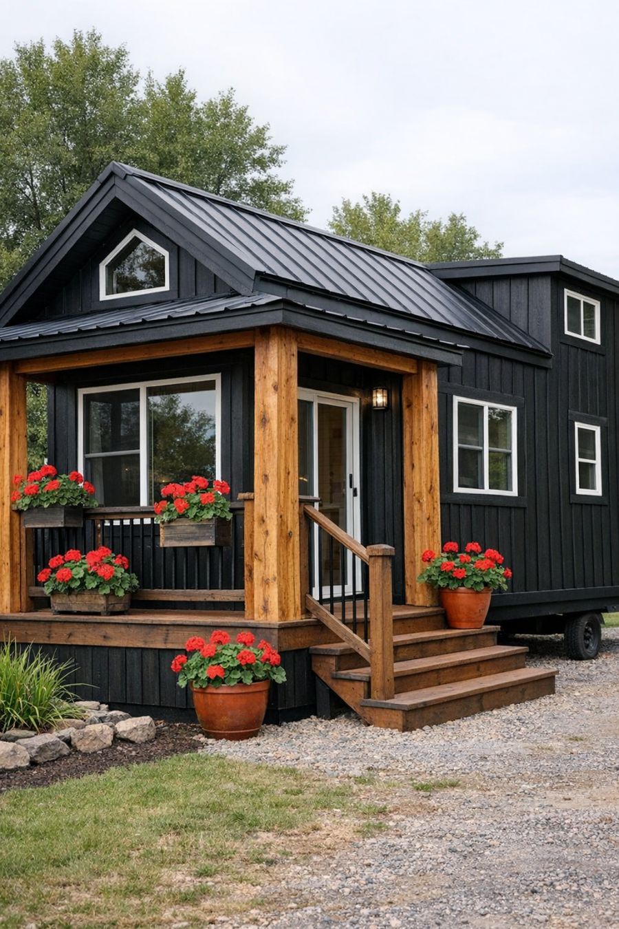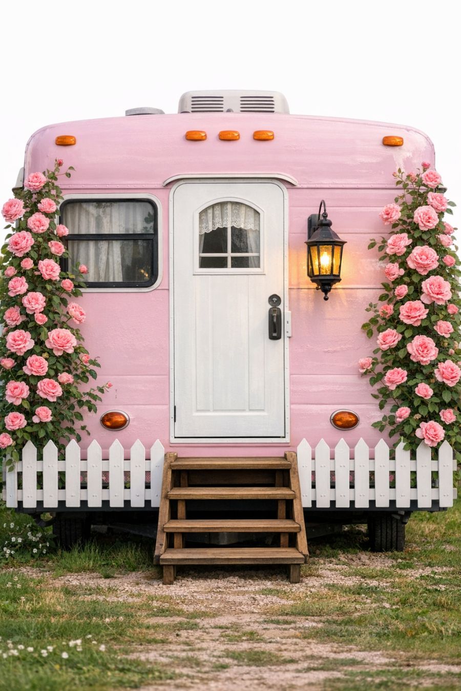 Take a peek at this whimsical whitewashed brick garden cottage with pink climbing roses. Inside, the spaces are filled with warm, rustic charm.