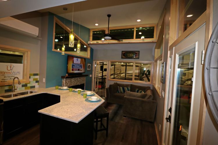 Utopia Villas states that the company was formed in 2014 as an offshoot of Vertical Works, Inc. The founder, Justin Kreger, desired to provide high quality, luxurious recreational vehicles for vacation home getaways. The Denali takes all 400 square feet (37 square meters) of space and puts it to use to provide a five-star experience for escaping on vacation.