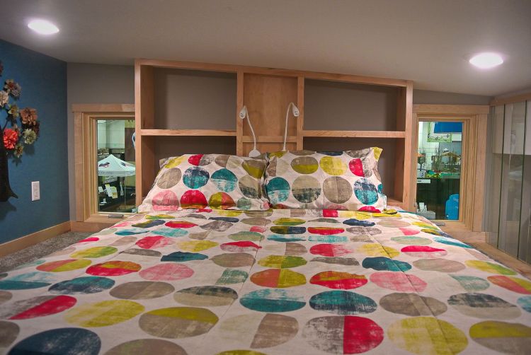 Above the kitchen, the loft can act as either a second bedroom or a play area.