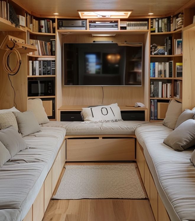 This pet-friendly tiny home also features a dedicated laundry room with pet-safe washing and drying appliances, and an outdoor area designed for play and exercise. A smart home system integrates pet care into daily living, with features like automated feeding, temperature control, and interactive pet cameras.