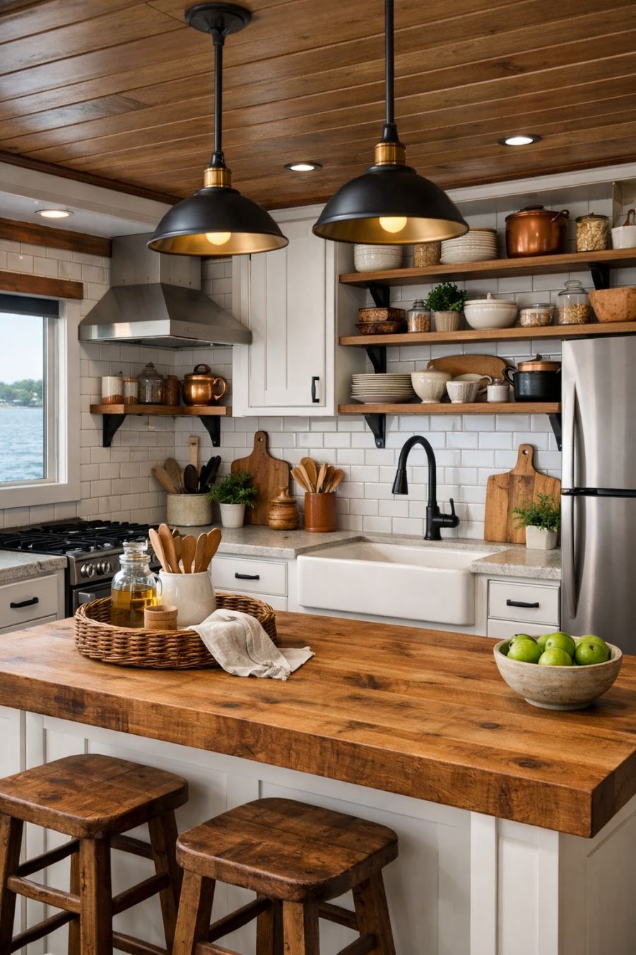 Living on this houseboat offers a unique blend of tranquility and style, making it an ideal choice for those seeking a peaceful retreat with modern comforts. The open-air design allows for a seamless connection to nature, while the farmhouse-inspired interiors provide a sense of warmth and nostalgia. It's a perfect home for anyone looking to embrace a lifestyle that values simplicity, elegance, and a deep appreciation for the beauty of the natural world.