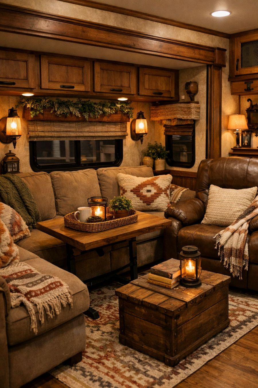 Step inside the living area, and you're greeted by a cozy and inviting space that embodies comfort. The interior design is a masterpiece of rustic elegance, with natural wood finishes and soft, earthy tones. Plush seating arrangements are strategically placed to maximize both space and relaxation, surrounded by warm lighting that creates an intimate ambiance. Thoughtful touches, like handwoven textiles and vintage-inspired decor, add character and make this space feel like a true home away from home.