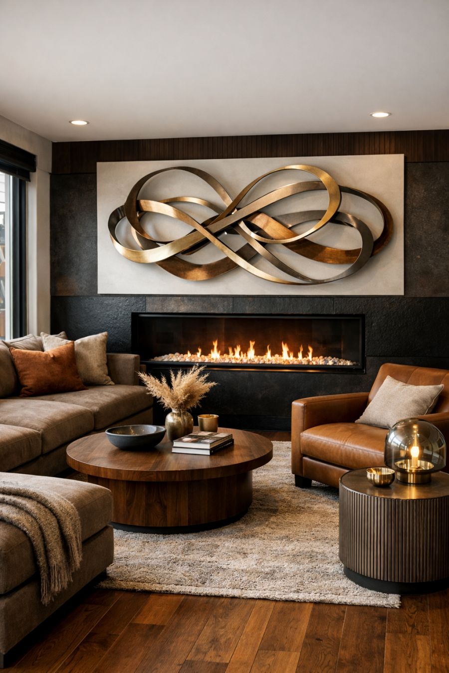 As you step inside, the living area immediately greets you with an air of refined elegance, characterized by its open layout and abundance of natural light. The space is adorned with plush, earth-toned furnishings that blend seamlessly with the rich hues of the wooden flooring, creating a warm and inviting atmosphere. A statement piece, such as a modern art installation or a sleek fireplace, serves as the focal point, adding a touch of artistic flair. The minimalist decor, punctuated by subtle metallic accents, ensures the room feels both spacious and luxurious.