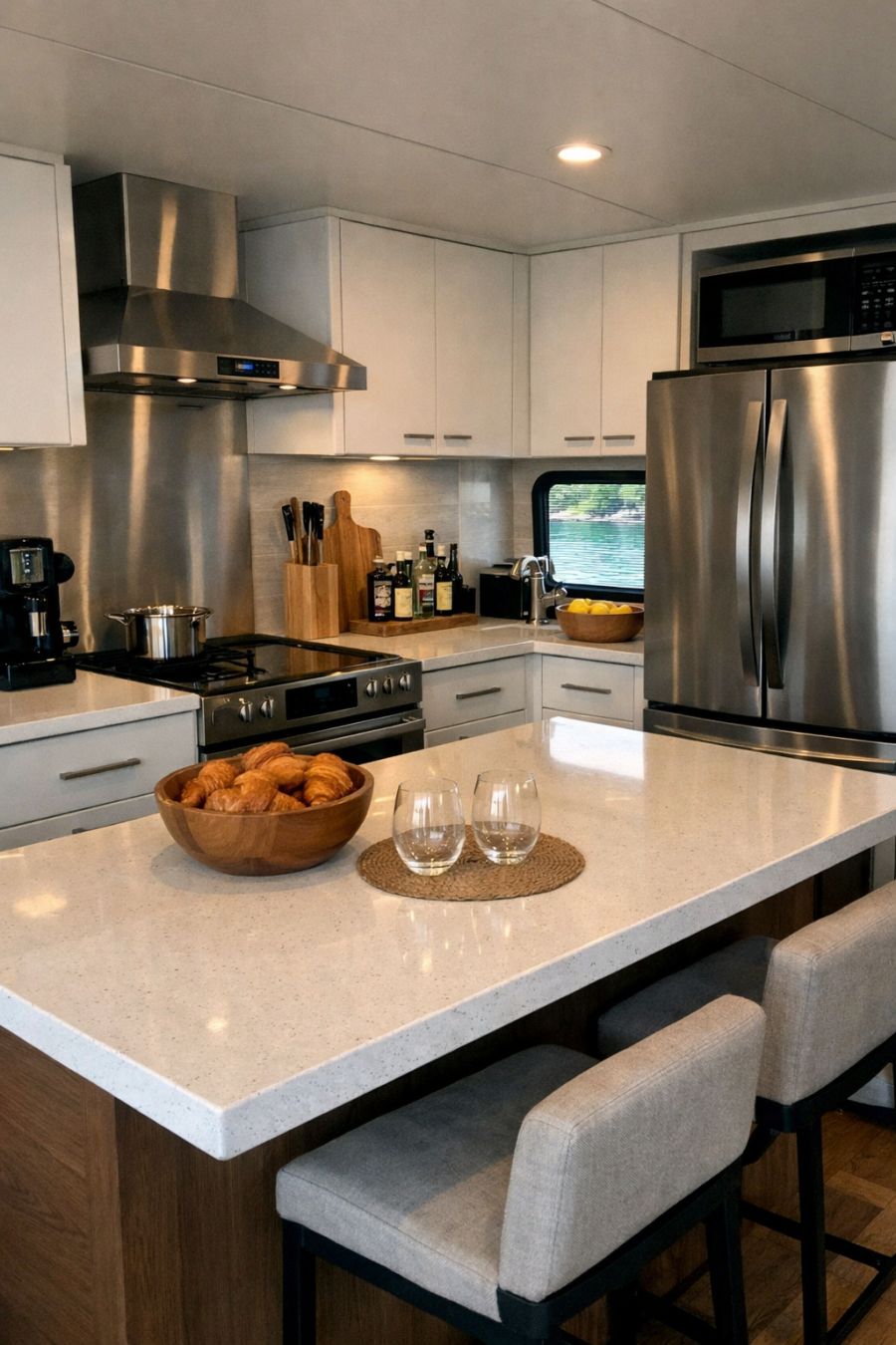 Living on this universal design houseboat offers a unique lifestyle that combines the tranquility of water living with the conveniences of modern design. It's an ideal choice for those seeking a harmonious balance between nature and urban comfort. The thoughtful design ensures accessibility for all, making it an inclusive space that caters to diverse needs and preferences. With its stunning aesthetics, smart functionality, and serene environment, this houseboat represents a new frontier in residential design, appealing to anyone looking for a beautiful and adaptable home on the water.